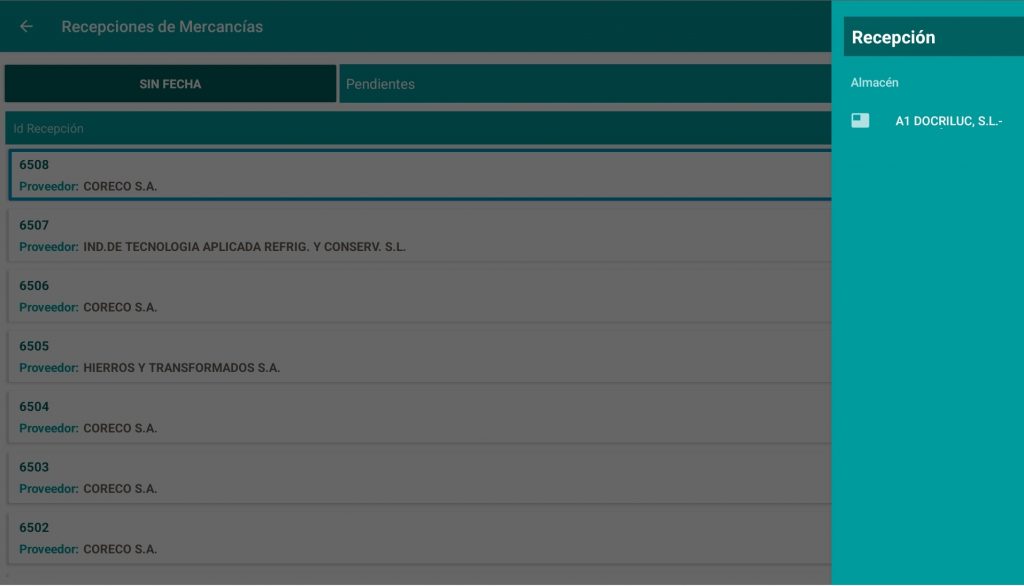 Listado de recepciones (Pantalla principal)
